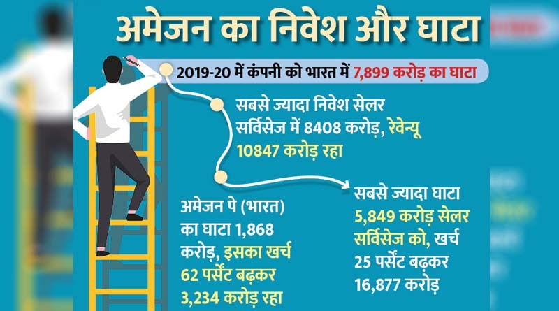 जानकारी के मुताबिक, अमेजन सेलर सर्विसेज, अमेजन होलसेल (भारत), अमेजन पे (भारत) और अमेजन ट्रांसपोर्टेशन सर्विसेज को वित्त वर्ष 2018-19 में 7014.5 करोड़ रुपए का नुकसान हुआ था जो 2019-20 में बढ़कर 7899 करोड़ रुपए हो गया।