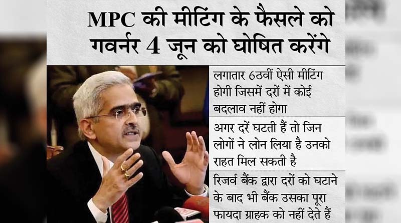 MPC पैनल ने अप्रैल 2021 में हुई अपनी पिछली बैठक में भी दरों में कोई बदलाव नहीं किया था। अगर 4 जून को ब्याज दरों में कोई बदलाव नहीं होता है तो यह लगातार छठवीं ऐसी MPC मीट होगी जिसमें आरबीआई की अहम दरें वर्तमान स्तरों पर ही बरकरार रखी जाएंगी। बैठक में गर्वनर शक्तिकांता दास 4 जून को MPC के फैसलों का एलान करेंगे।