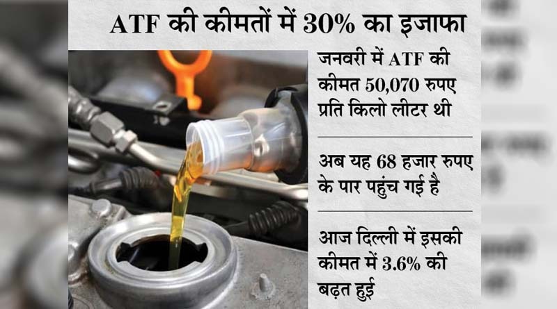 ताजे मामले में गुरुवार को दिल्ली में ATF की कीमत में 3.6% का इजाफा देखा गया। इससे इसकी कीमत 68 हजार 262 रुपए प्रति किलो लीटर पर पहुंच गई। जनवरी में इसकी कीमत 50 हजार 979 रुपए थी। तब से लगातार तेल कंपनियां इसकी कीमतों में इजाफा कर रही हैं। इंडियन ऑयल कॉर्पोरेशन ने कहा कि उसने गुरुवार को कीमतों में बढ़ोत्तरी कर दी है। यह कंपनी ATF की सबसे बड़ी सप्लायर है।