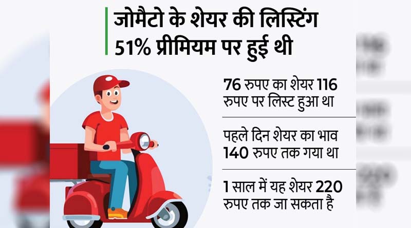 जोमैटो के शेयर में भारी गिरावट, पर 1 साल में 220 रुपए तक जा सकता है