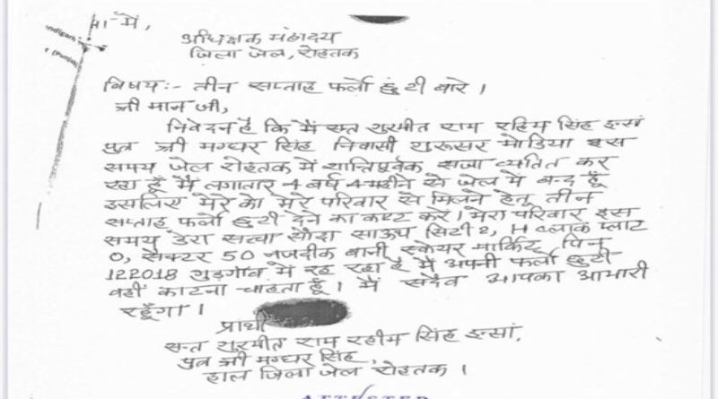 राम रहीम के अनुसार, वह 4 साल 4 महीने से जेल में बंद है और परिवार से मिलने के लिए 21 दिन की फरलो छुट्टी चाहता है। गुरुग्राम कलेक्टर ने एक दिन में ही एक जनवरी को राम रहीम को फरलो देने की सिफारिश करते हुए वापस रोहतक प्रशासन को पत्र का जवाब भेज दिया था।