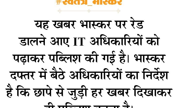 Read moreमुंबई– दैनिक भास्कर की आक्रामक पत्रकारिता के चलते आयकर विभाग की टीम ने गुरुवार सुबह मध्य प्रदेश, राजस्थान, गुजरात और महाराष्ट्र में
