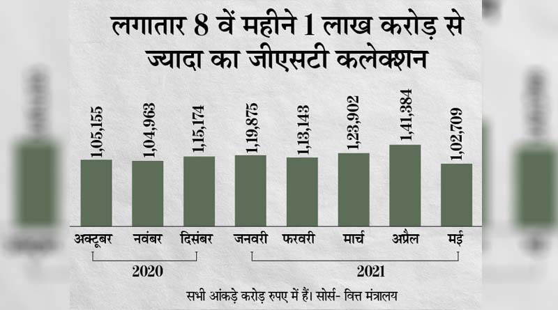 Read moreमुंबई– कोरोना की दूसरी लहर के बावजूद लगातार सातवें महीने वस्तु एवं सेवा कर (GST) कलेक्शन 1 लाख करोड़ रुपए