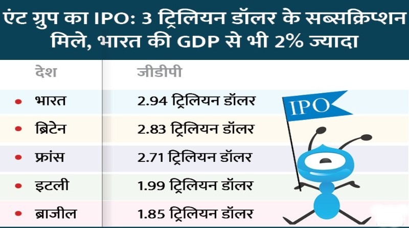 भारत सहित कई देशों की जीडीपी से बड़ा एंट ग्रुप के आईपीओ को मिला 220 लाख करोड़ रुपए का सब्सक्रिप्शन