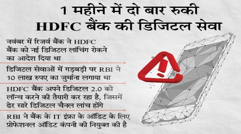HDFC बैंक की डिजिटल बैंकिंग में बार-बार गड़बड़ी से रिजर्व बैंक बढ़ा सकता है प्रतिबंध का समय