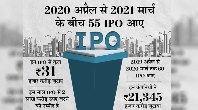 पूरे साल की बात करें तो 2020 अप्रैल से मार्च 2021 के बीच 55 IPO आए थे। इन्होंनें 31 हजार करोड़ रुपए से ज्यादा की रकम जुटाई थी। 2019-20 में कुल 60 IPO जरूर आए पर पैसे कम जुटाए। इन्होंने 21,345 करोड़ रुपए जुटाए थे।