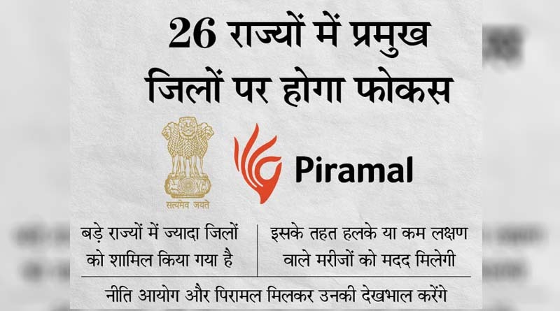 मुंबई– सरकार के थिंक टैंक नीति आयोग और देश का प्रमुख कॉर्पोरेट घराना पिरामल ग्रुप के पिरामल फाउंडेशन ने कोरोना के मरीजों की घर-घर देखभाल करने की योजना शुरू की है। इसके तहत देश भर के 112 जिलों में अभियान चलाया जाएगा। इसे सुरक्षित हम सुरक्षित तुम का नाम दिया गया है। यह जिले देश के 26 राज्यों में हैं। इसमें बड़े राज्यों में ज्यादा जिले हैं।