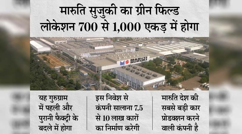 मुंबई– कार बनाने वाली देश की सबसे बड़ी कंपनी मारुति सुजुकी ने कहा है कि वह हरियाणा से अपना कोई भी निवेश और रोजगार गुजरात लेकर नहीं जा रही है। साथ ही वह नए प्लांट पर 18 हजार करोड़ रुपए का निवेश करेगी। इसके जरिए सालाना वह 7.50 से 10 लाख कारों को हरियाणा के प्लांट में बनाने में सफल होगी।