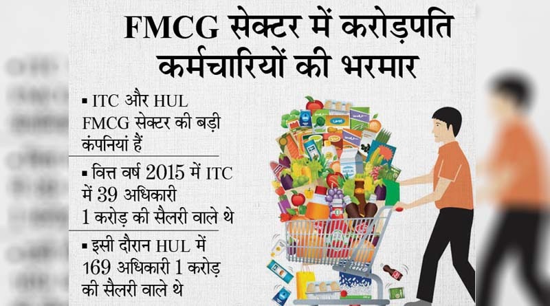 मुंबई– फास्ट मूविंग कंज्यूमजर गुड्स (FMCG) कंपनियों में ऊंचे पदों पर बैठे लोगों की चांदी है। इन्हें सालाना 1 करोड़ रुपए से ज्यादा की सैलरी मिलती है। देश में FMCG सेक्टर की दो प्रमुख कंपनियों हिंदुस्तान यूनिलिवर (HUL) और ITC में कुल मिलाकर 219 लोग ऐसे हैं जिनकी सैलरी सालाना 1 करोड़ रुपए से ज्यादा है।