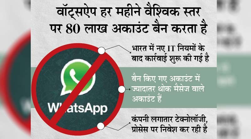 वॉट्सऐप ने बताया कि यह कार्रवाई 15 मई से 15 जून के बीच की गई है। अपनी पहली रिपोर्ट में उसने कहा कि इन अकाउंट को भारतीय कोड के रूप में पहचान किया गया था। उसके बाद इन पर कार्रवाई की गई। इसी तरह यह हर महीने में वैश्विक स्तर पर कम से कम 80 लाख अकाउंट को या तो बैन कर देता है या फिर उन्हें डिसेबल कर देता है।