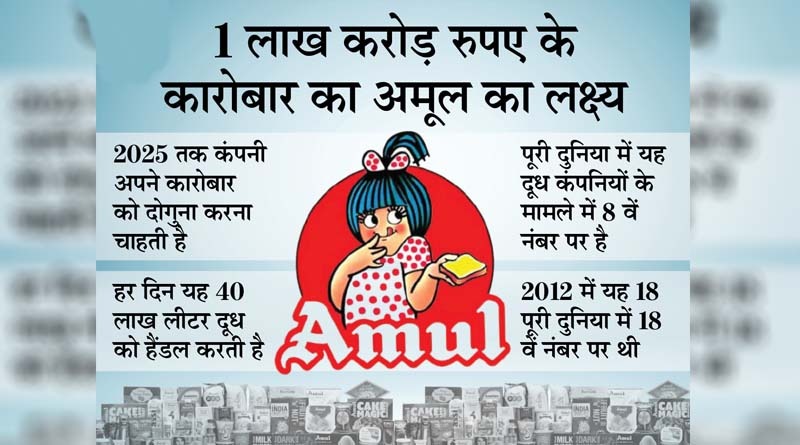 पिछले वर्ष अमूल का कारोबार 38,542 करोड़ रुपए था। इसका लक्ष्य 2025 तक रेवेन्यू को दोगुना कर 1 लाख करोड़ रुपए करने का है। फिलहाल पूरी दुनिया में यह 8 वें नंबर की सबसे बड़ी दूध उत्पादक कंपनी है। 2012 में यह 18 वें नंबर पर थी। दरअसल महामारी में लॉकडाउन होने से घरों में डेयरी प्रोडक्ट की खपत बढ़ गई। इस वजह से कंपनी के कारोबार में उछाल देखा गया है। इसके कुल सदस्यों ने 2021 में दूध प्रोक्योरमेंट में 14% की बढ़त हासिल की है। प्रति दिन यह 40 लाख लीटर दूध को हैंडल करती है।