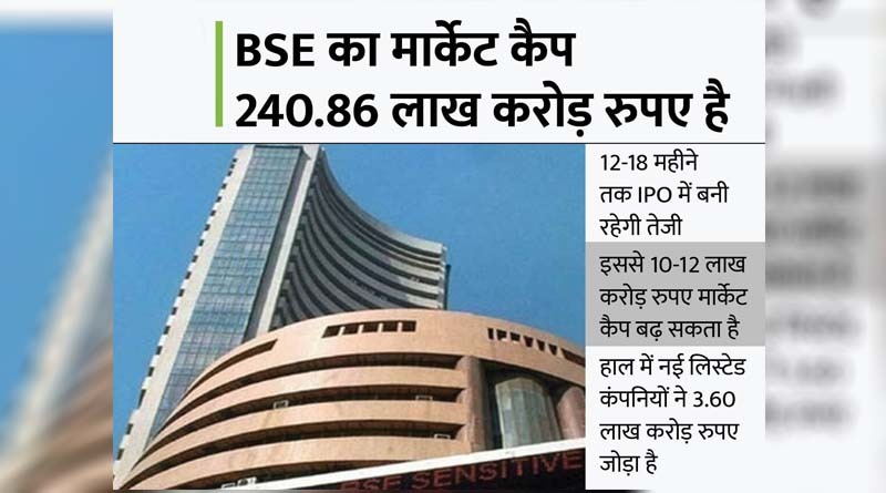 BSE में लिस्टेड कंपनियों का मार्केट कैप 240.86 लाख करोड़ रुपए है। 12 से 18 महीनों में जो कंपनियां IPO लेकर आएंगी, उनका मार्केट कैप 12 लाख करोड़ रुपए के करीब हो सकता है। अगले साल मार्च तक भारतीय जीवन बीमा निगम (LIC) का IPO आने की उम्मीद है। LIC मार्केट कैप में 10 लाख करोड़ रुपए के करीब जोड़ सकती है।