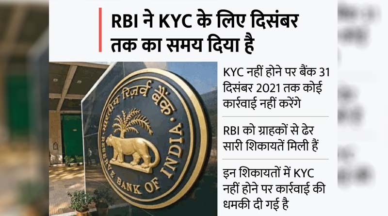 कोरोना के समय में रिजर्व बैंक ने बैंकों को यह आदेश दिया था कि वे KYC (नो योर कस्टमर) के चलते किसी भी अकाउंट को 31 दिसंबर तक बैन न करें। किसी अकाउंट में यदि ग्राहकों की पूरी जानकारी नहीं है तो बैंक उस पर प्रतिबंध न लगाएं। RBI ने ग्राहकों को सावधान करते हुए कहा कि किसी भी KYC के मामले में फोन, SMS या ईमेल पर अपनी बैंकिंग डिटेल्स न दें।
