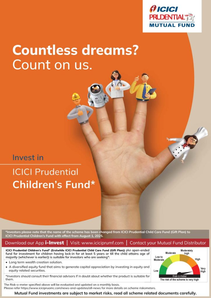 चिल्ड्रन म्यूचुअल फंड के क्षेत्र में ICICI प्रूडेंशियल चिल्ड्रन फंड एक ऐसी योजना है जिसका लंबा और भरोसेमंद रिकॉर्ड रहा है और जिसने समय के साथ अच्छे रिटर्न दिए हैं। ICICI प्रूडेंशियल चिल्ड्रन फंड एक ओपन-एंडेड निवेश योजना है जो बच्चों के लिए बनाई गई है। इसमें कम से कम पांच साल का लॉक-इन होता है, या फिर जब बच्चा बालिग हो जाए, जैसा भी पहले हो। यह फंड इक्विटी और डेट दोनों प्रकार की संपत्तियों में निवेश करता है और जरूरत पड़ने पर बेंचमार्क से बाहर के विषयों में भी अवसर के अनुसार निवेश करने का फ़्रीडम रखता है।