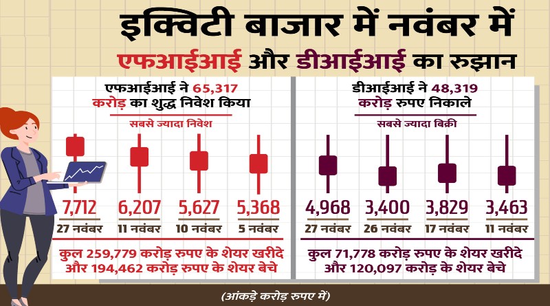 Read moreमुंबई– विदेशी संस्थागत निवेशकों (FII) ने नवंबर में अब तक 65,317 करोड़ रुपए का इक्विटी बाजार में शुद्ध निवेश किया