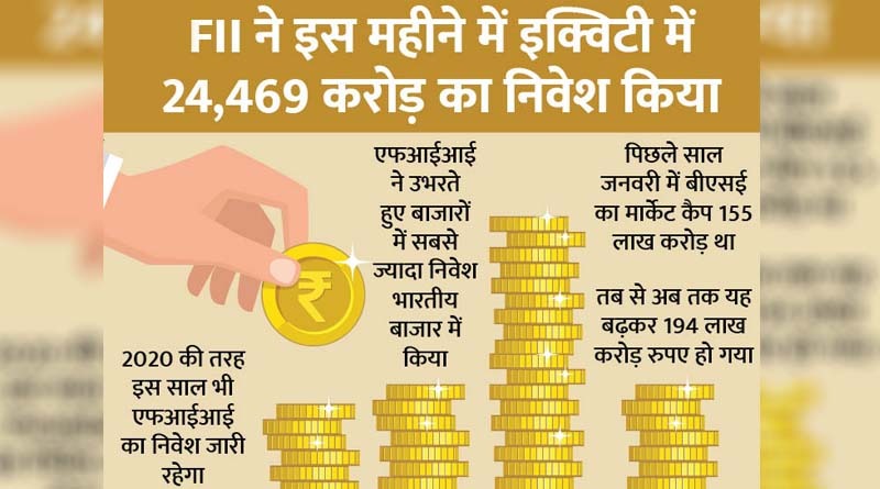 मुंबई– विदेशी संस्थागत निवेशकों (FII) ने जनवरी 2020 से जनवरी 2021 के अभी तक के शेयर बाजार के कारोबार में